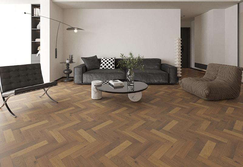 Mörk med premiumvit ek i Östeuropa, mörk rökt Östeuropa Herringben Engineered trägolv har en djupt borstad yta som betonar träets rika struktur och korn. Den mörka rökt finishen ger träet en sofistikerad, humörig ton, vilket skapar en djärv men inbjudande atmosfär i alla utrymmen. Det klassiska sillbensmönstret lägger till dynamiskt visuellt tilltalande, vilket gör detta golv till ett bra uttalande för vardagsrum, kontor och korridorer. Med en CD -klass erbjuder den stor hållbarhet och stabilitet, som står upp mot hög fottrafik i både bostads- och kommersiella miljöer. UV-oljebeläggningen förbättrar inte bara träets naturliga skönhet utan ger också skydd mot slitage, vilket säkerställer långvarig prestanda. Den glansnivån på 10 ± 2 ° ger en subtil, raffinerad glans som belyser träets djupa toner utan att vara överdrivande. Ideal för alla som vill lägga till värme, karaktär och stil till deras inredning, mörk rökt sillbensgolv erbjuder både estetisk charm och bestående funktionalitet, bra för att skapa en lyxig och enduring i alla rum.