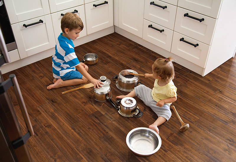 Trägolv har en ljudbsorberande effekt, vilket kan minska bruset som genereras av promenader och föremål som faller och ger en tystare livsmiljö.